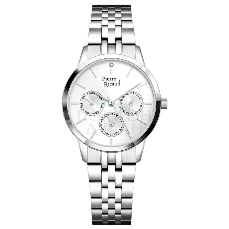 Ženski pierre ricaud multifunckionalni beli srebrni sportsko elegantni ruČni sat sa srebrni metalnim kaiŠemŠifra proizvoda P21056.5113QF Brend Pierre Ricaud Pol Ženski Kolekcija Sportski, Elegantni Kolekcija Brenda N/A Garancija 2 godine Materijal kaiša Metalni kaiš Boja kaiša Srebrna Širina kaiša N/A Tip kopče kaiša Preklopna kopča sa sigurnosnom dugmadi Zamenljivost kaiša Nestandardni Ulaz Materijal kućišta Čelik Oblik brojčanika Okrugao Dimenzija brojčanika 33 mm Debljina kućišta 8 mm Vodootpornost sata 3 ATM Staklo Mineralno Mehanizam N/A Kalibar mehanizma Seiko Izloženi mehanizam Ne Ušrafljujuća krunica Ne Rotirajuća korona Ne Prikaz vremena Analogni Boja brojčanika Bela Štoperica Ne Dan Da Datum Da Mesec Ne 24 časovni indikator N/A 24 časovno vreme N/A 20 Sekundarna štoperica N/A Vremenske zone Ne Indikator dan/noć Ne Luminacija Ne Brzinometar Ne Osvetljenje Ne - Dostava i povraćaj