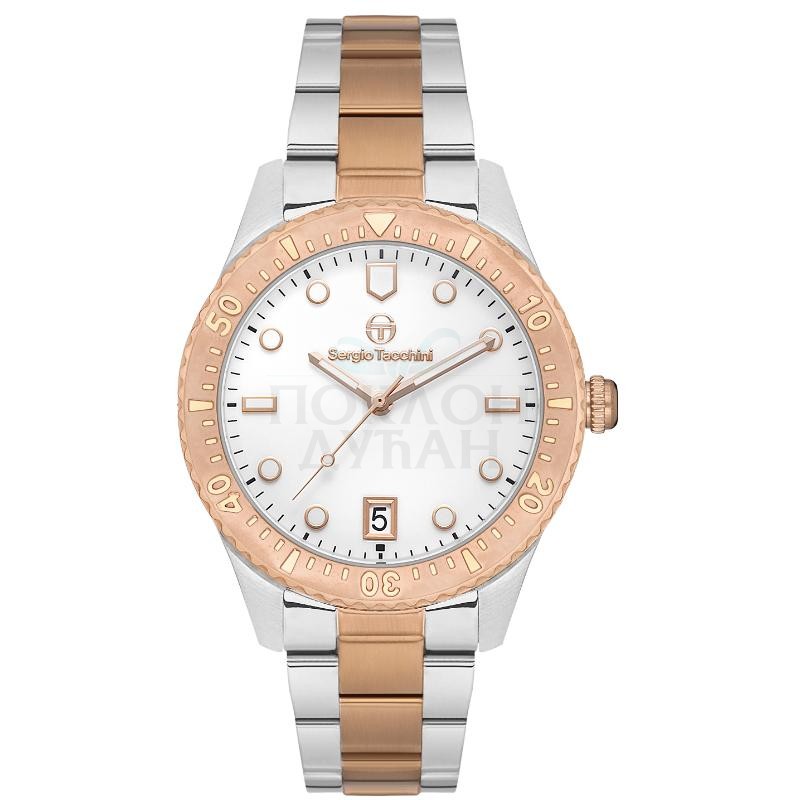 Ženski sergio tacchini coastlife beli roze zlatni sportsko elegantni ruČni sat sa bikolor metalnim kaiŠemŠifra proizvoda ST.1.10408.6 Brend Sergio Tacchini Pol Ženski Kolekcija Sportski, Elegantni Kolekcija Brenda Coastlife Garancija 2 godine Materijal kaiša Metalni kaiš Boja kaiša Bikolor Širina kaiša 18 mm Tip kopče kaiša Preklopna Kopča Sa Sigurnosnom Dugmadi Zamenljivost kaiša Standardni Ulaz Materijal kućišta Čelik Oblik brojčanika Okrugao Dimenzija brojčanika 38 mm Debljina kućišta N/A Vodootpornost sata 5 ATM Staklo Mineralno Mehanizam N/A Kalibar mehanizma Seiko Izloženi mehanizam Ne Ušrafljujuća krunica Ne Rotirajuća korona Ne Prikaz vremena Analogni Boja brojčanika Bela Štoperica Ne Dan Ne Datum Da Mesec Ne 24 časovni indikator N/A 24 časovno vreme N/A 20 Sekundarna štoperica N/A Vremenske zone Ne Indikator dan/noć Ne Luminacija Fosfor Brzinometar Ne Osvetljenje Ne - Dostava i povraćaj