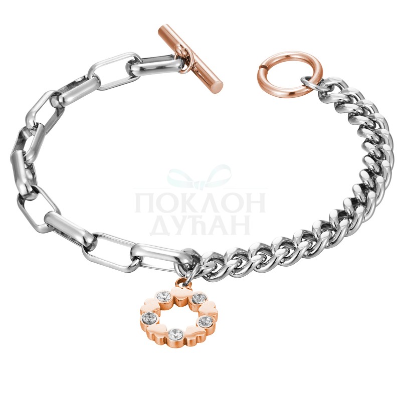 Ženska freelook srebrna roze zlatna narukvica od hirurŠkog ČelikaŠifra proizvoda FRJ.3.3069.2 Brend Freelook Pol Ženski Garancija N/A Kolekcija Brenda N/A Kolekcija nakita N/A Tip nakita N/A Materijal nakita Čelik Boja nakita Roze Zlatna, Srebrna Dimenzije nakita N/A Podesiva veličina Da Tip kopče Papagaj Viseće Ne Tip lančića N/A Napomena N/A - Dostava i povraćaj