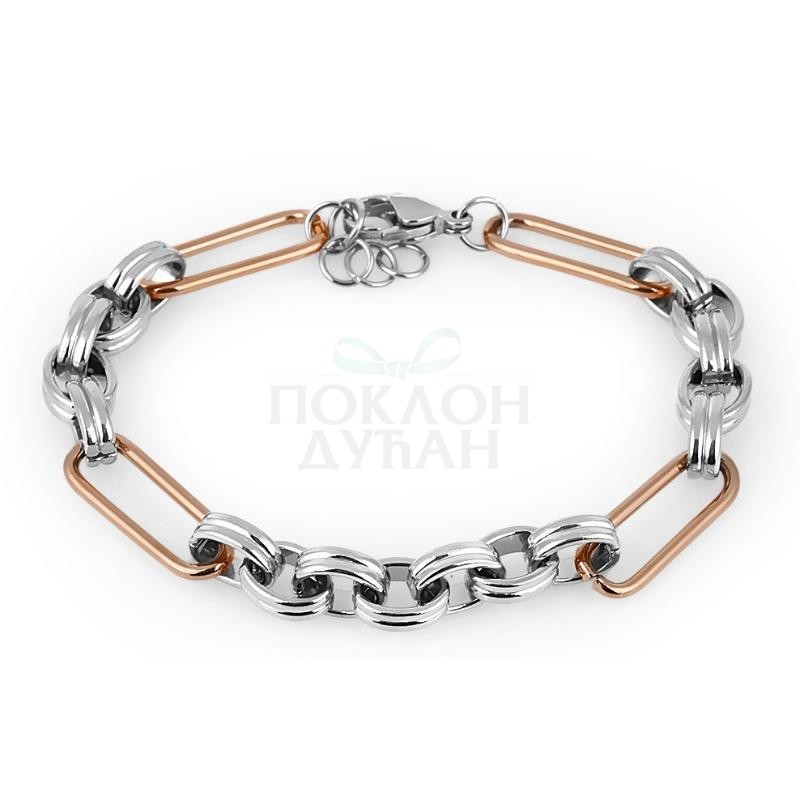 Ženska freelook srebrna roze zlatna narukvica od hirurŠkog ČelikaŠifra proizvoda FRJ.3.3101.4 Brend Freelook Pol Ženski Garancija N/A Kolekcija Brenda N/A Kolekcija nakita N/A Tip nakita N/A Materijal nakita Hirurški čelik Boja nakita Roze Zlatna, Srebrna Dimenzije nakita N/A Podesiva veličina Da Tip kopče Papagaj Viseće Ne Tip lančića Ne Napomena N/A - Dostava i povraćaj