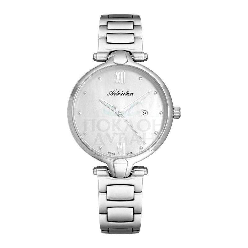 Ženski adriatica essence srebrni elegantni ručni sat sa belim brojčanikom i srebrnim metalnim kaišemŠifra proizvoda A3735.518ZQ Brend Adriatica Pol Ženski Kolekcija Modni, Elegantni Kolekcija Brenda Essence Garancija 2 Godine Materijal kaiša Metalni Boja kaiša Srebrna Širina kaiša 14 mm Tip kopče kaiša Preklopna Kopča Sa Sigurnosnom Dugmadi Zamenljivost kaiša Nestandardni Ulaz Materijal kućišta Čelik Oblik brojčanika Okrugao Dimenzija brojčanika 33 mm Debljina kućišta 7 mm Vodootpornost sata 3 ATM Staklo Mineralno Mehanizam Ne Kalibar mehanizma Eta Izloženi mehanizam Ne Ušrafljujuća krunica Ne Rotirajuća korona Ne Prikaz vremena Analogni Boja brojčanika Bela Štoperica Ne Dan Ne Datum Da Mesec Ne 24 časovni indikator Ne 24 časovno vreme Ne 20 Sekundarna štoperica Ne Vremenske zone Ne Indikator dan/noć Ne Luminacija Ne Brzinometar Ne Osvetljenje Ne - Dostava i povraćaj