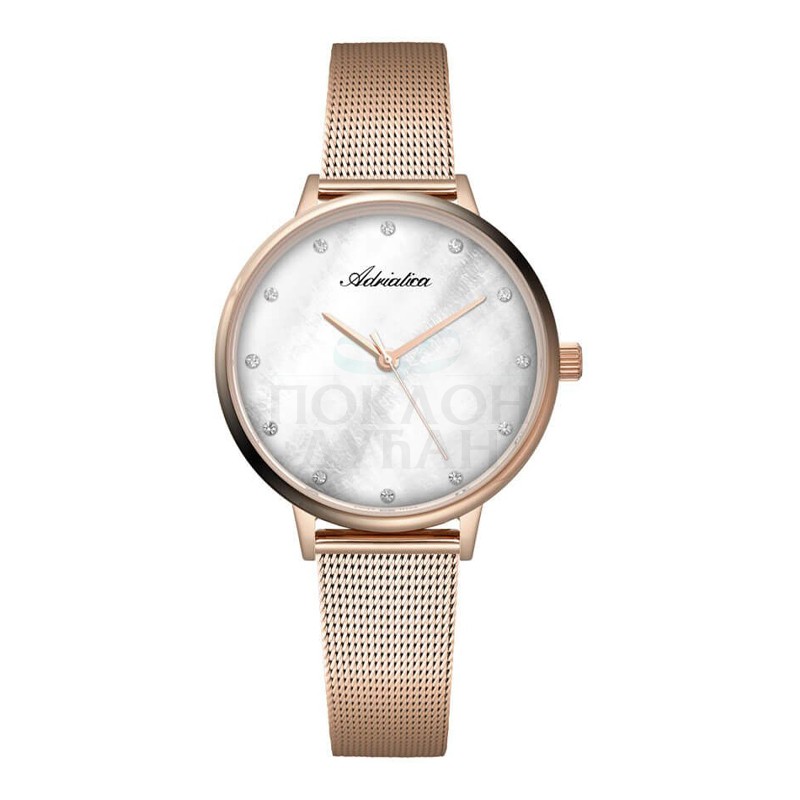 Ženski adriatica milano swarovski roze zlatni elegantni ručni sat sa belim sivim brojčanikom i roze zlatnim pancir kaišemŠifra proizvoda A3573.914FQ Brend Adriatica Pol Ženski Kolekcija Modni, Elegantni Kolekcija Brenda Milano Garancija 2 Godine Materijal kaiša Metalni Boja kaiša Roze Zlatna Širina kaiša 14 mm Tip kopče kaiša Preklopna Zamenljivost kaiša Standardni Ulaz Materijal kućišta Čelik Oblik brojčanika Okrugao Dimenzija brojčanika 34 mm Debljina kućišta 7 mm Vodootpornost sata 3 ATM Staklo Mineralno Mehanizam Ne Kalibar mehanizma Ronda Izloženi mehanizam Ne Ušrafljujuća krunica Ne Rotirajuća korona Ne Prikaz vremena Analogni Boja brojčanika Bela, Siva Štoperica Ne Dan Ne Datum Ne Mesec Ne 24 časovni indikator Ne 24 časovno vreme Ne 20 Sekundarna štoperica Ne Vremenske zone Ne Indikator dan/noć Ne Luminacija Ne Brzinometar Ne Osvetljenje Ne - Dostava i povraćaj